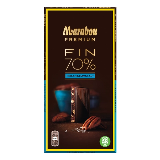 Indulge in a rich and refined chocolate experience with Marabou Premium Pecan & Sea Salt 70%. Crafted with deep, intense dark chocolate, this bar delivers a bold cocoa flavor balanced by the warm, buttery crunch of roasted pecans. A touch of sea salt enhances every bite, bringing out the chocolate’s natural richness while adding a subtle savory twist. Smooth, nutty, and perfectly balanced, it’s a sophisticated treat made for true chocolate lovers.